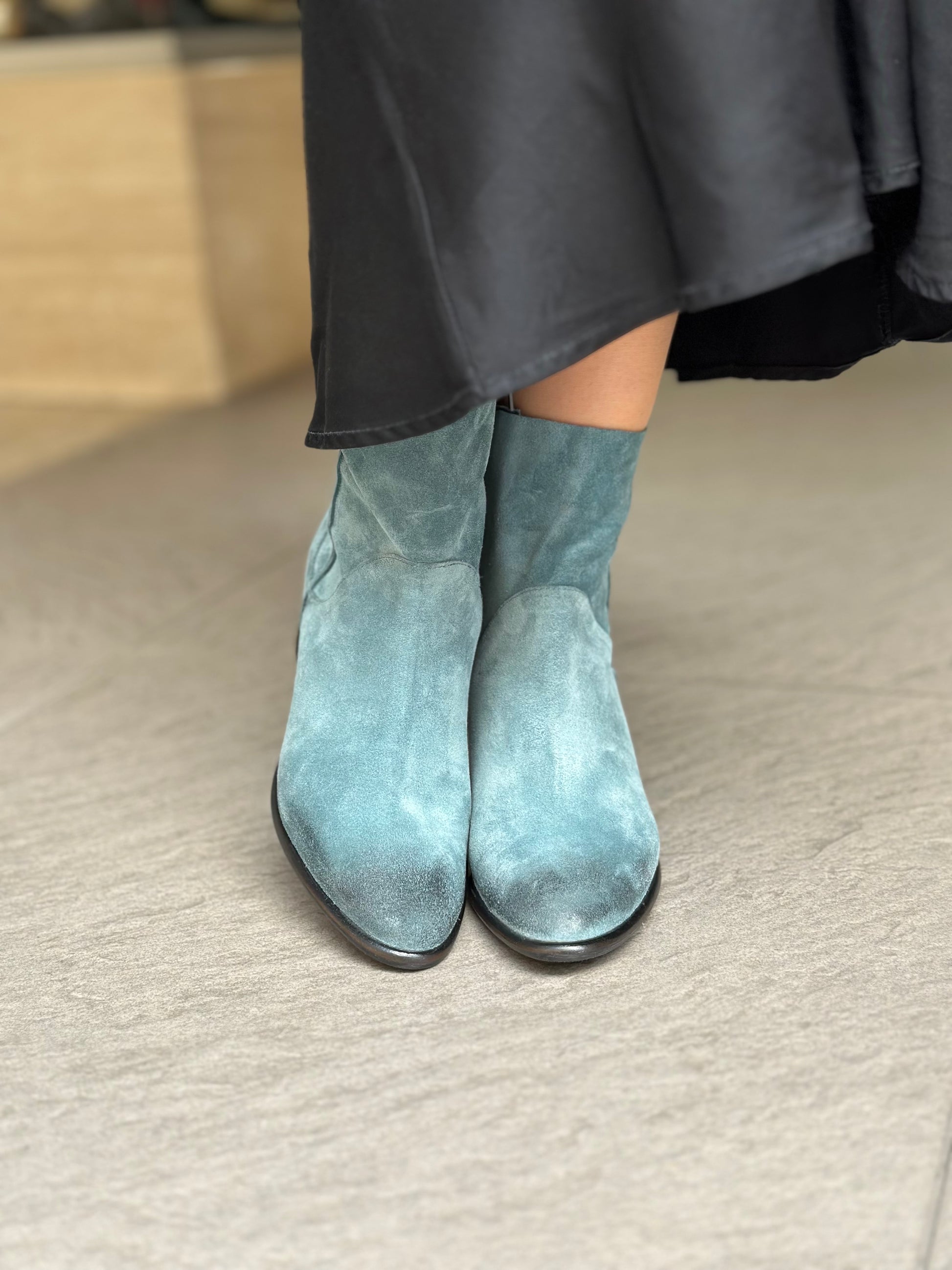 Les bottines MAISON21 1951 SAYO GRANITO BLEU pour femme sont faites à 100% en cuir daim, avec un petit talon de 6cm et une semelle en caoutchouc antidérapante. Le zip latéral souple et confortable les rend faciles à enfiler. Un choix idéal pour une allure élégante et sans compromis sur le confort.
