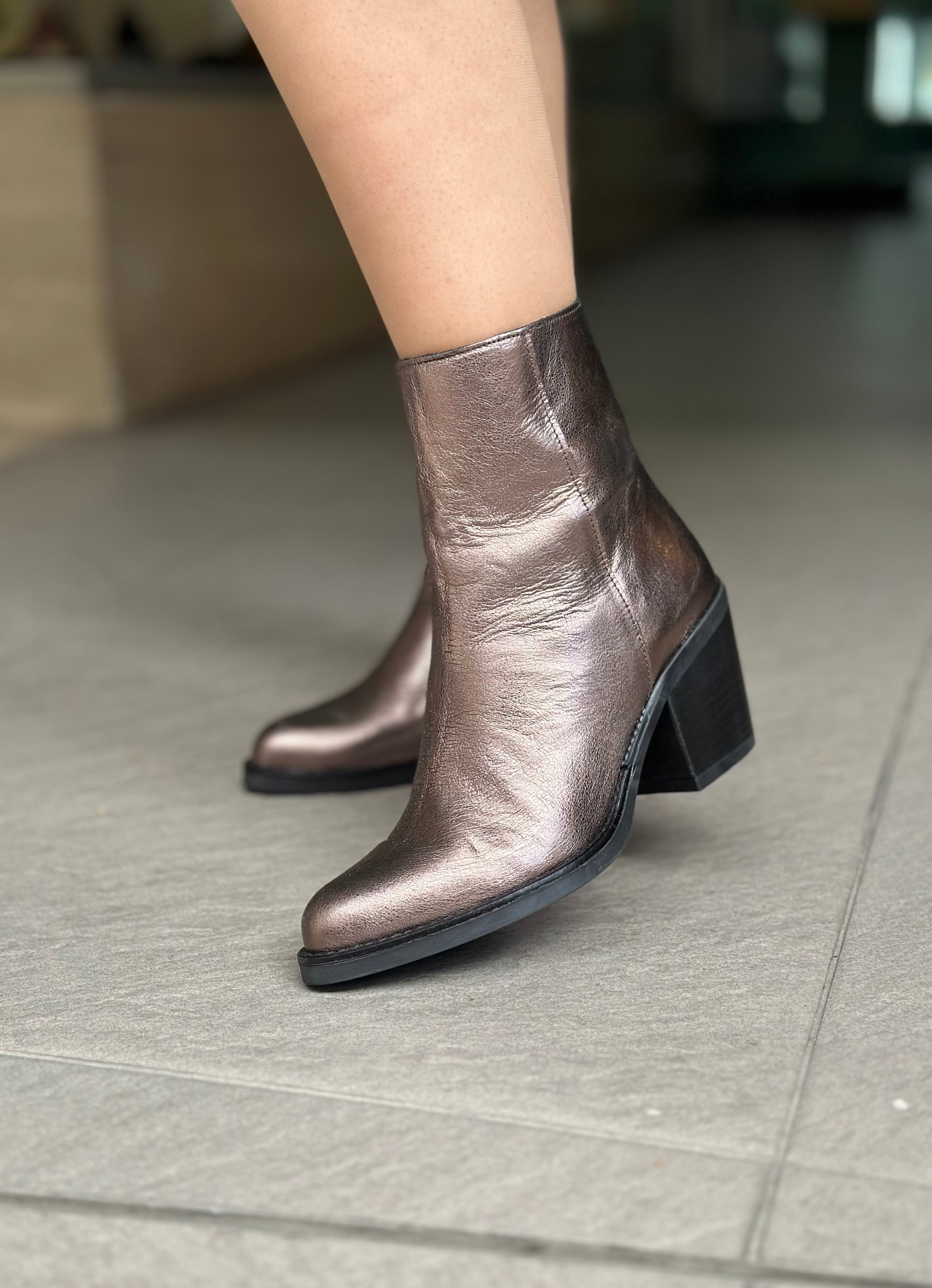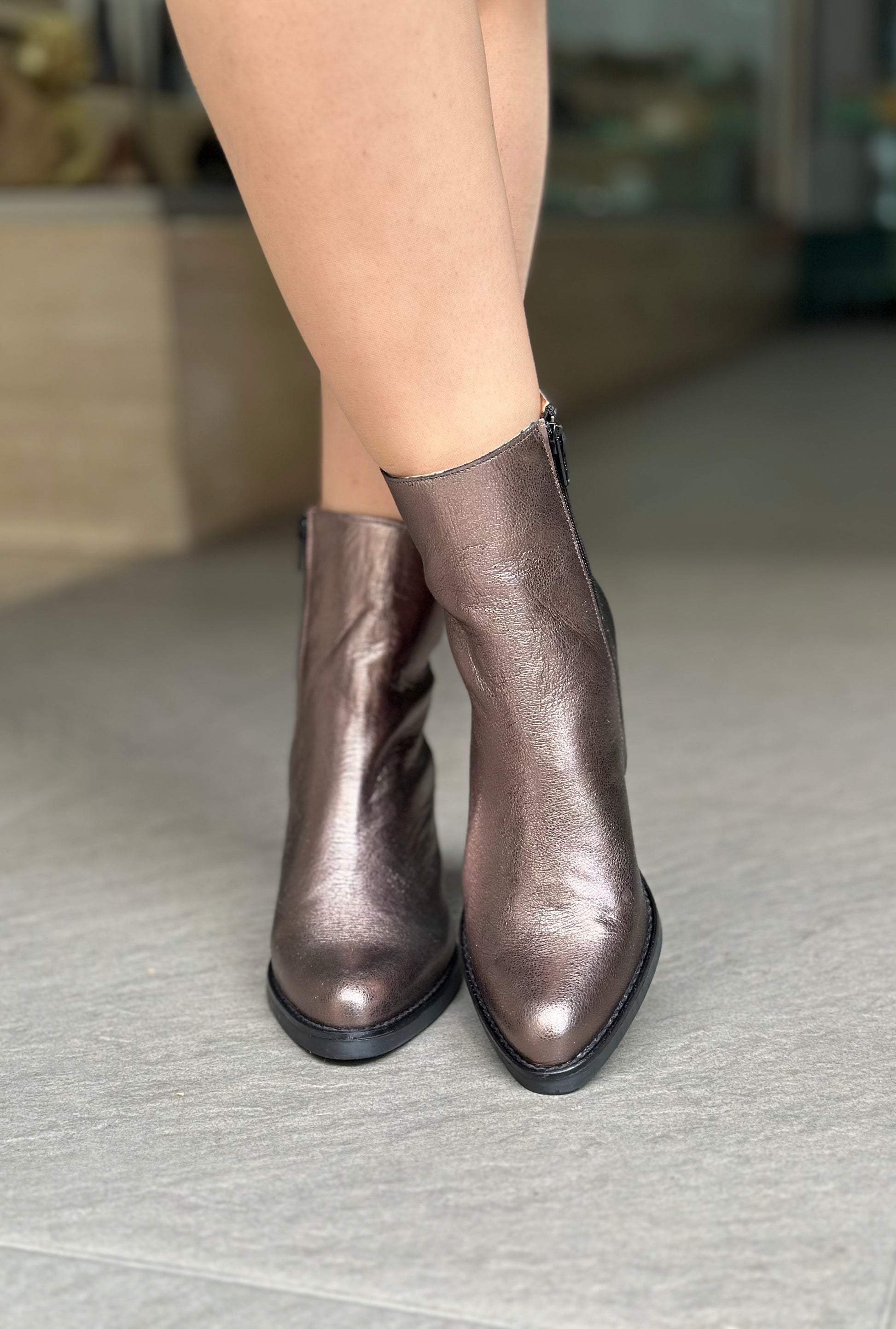 Conçues pour être à la fois élégantes et confortables, ces bottines pour femmes en cuir métallisé sont l'indispensable à tout look. Avec un talon de 7,5 cm qui reste insoupçonnable, elles se ferment facilement par zip latéral. Un choix pratique et stylé qui vous accompagnera partout.